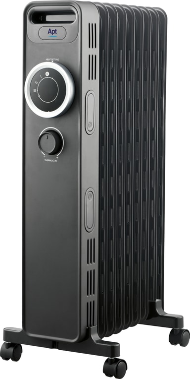 Apt Therma oljeelement 2000W ger jämn och tyst värme med 9 fenor för effektiv rumsuppvärmning. Den har 3 värmelägen, justerbar termostat, tippskydd och överhettningsskydd.Läs mer om produkten