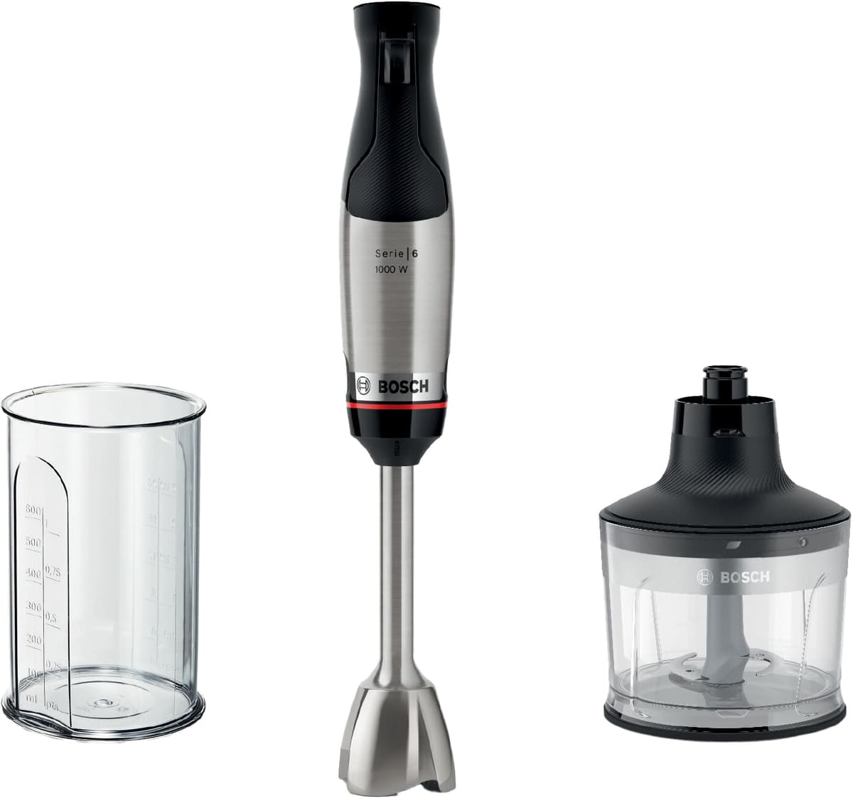 Bosch ErgoMaster Series 6-blender MSM6M630 på 1000 watt gör köksarbetet enkelt med steglös hastighetskontroll, ett 4-bladigt QuattroBlade Pro-system, en 500 ml hackskål och en bägare.Läs mer om produkten