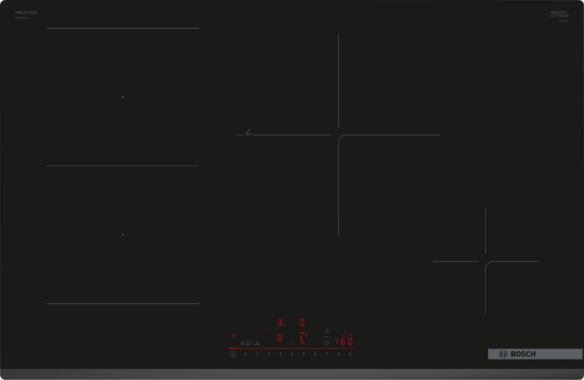 Bosch PVS83KHC1Z Häll: 80 cm, 4-zonsmatlagning med CombiZone, Multitouch+-kontroll, 17 effektnivåer och Home Connect för smart, effektiv måltidsförberedelse.Läs mer om produkten