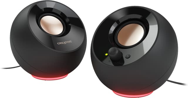 Snygga och praktiska Creative Pebble SE är ett kompakt 2.0 USB-C-drivet högtalarsystem designat för att förbättra din PC-ljudupplevelse med livfullt RGB-belysning.