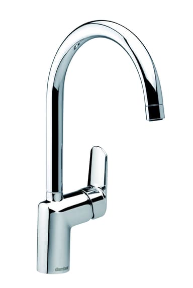 Elegant köksblandare i krom med hög C-pip och ett praktiskt sidohandtag.Läs mer om produkten