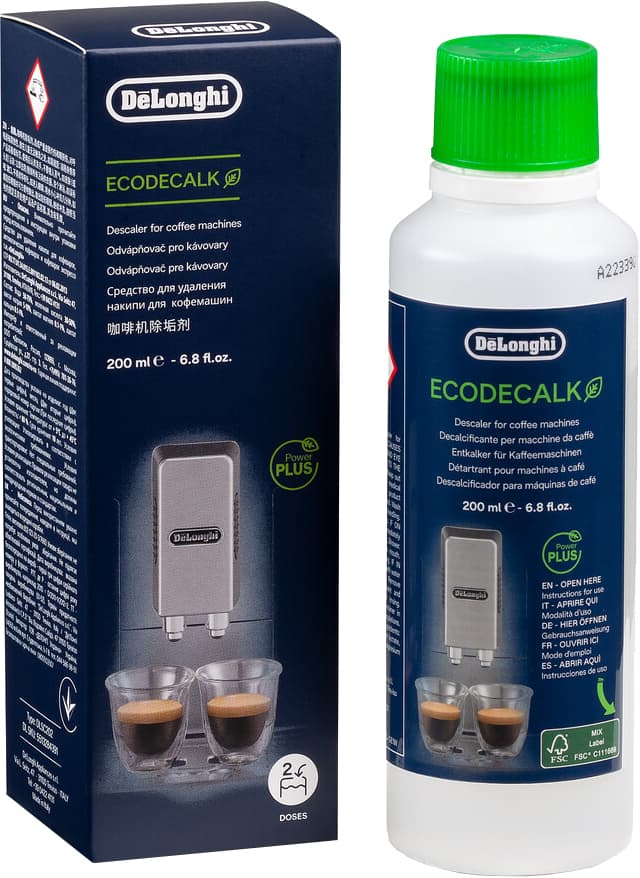 Njut av ren kaffesmak och förläng livslängden på din kaffe- eller expressomaskin genom att se till att den hålls i bästa skick med De'Longhi Ecodecalk avkalkningsmedel DLSC202 (200 ml).