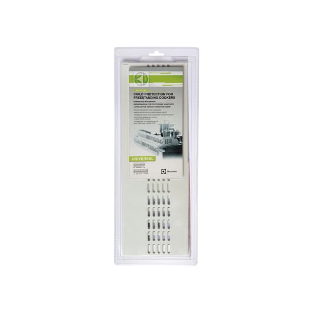 Electrolux barnskydd för fristående spisar. Bredd: min 40 cm, max 75 cm. Universalskydd, enkel att installera håller barns nyfikna fingrar borta från heta kastruller och pannor så att de inte bränner sig. Innehåller 1st.