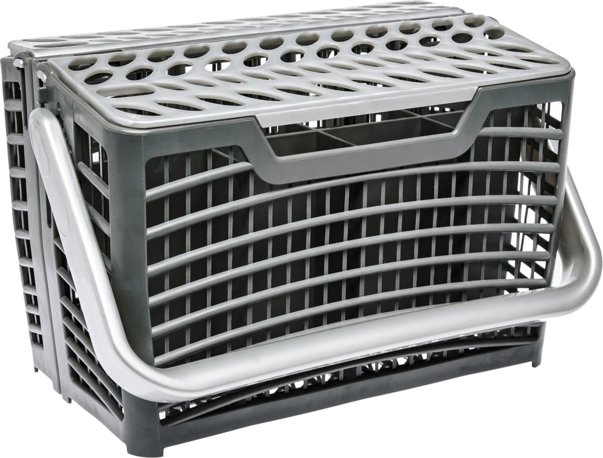 En justerbar bestickkorg som du kan anpassa efter dina dagliga behov. Bestickskorgen kan delas för att skapa två mindre korgar om du behöver mer utrymme i din diskmaskin och handtaget kan fällas ner sådet inte är ivägen för några sprayarmar.Läs mer om produkten