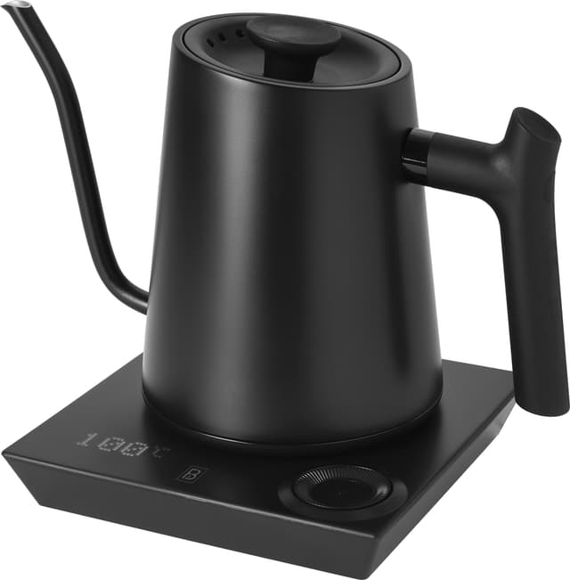 F&B vattenkokare 72995 (1200 watt, 0,9L) har justerbar temp. från 40°C till 100°C, svanhals för kontrollerad hällning, samt varmhållning och torrkokningsskydd.Läs mer om produkten