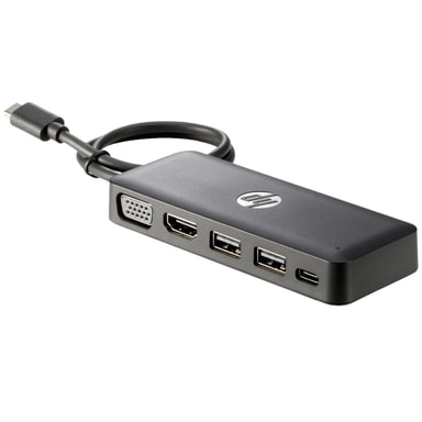 HP USB-C resedocka låter dig ansluta din bärbara dator till flera externa enheter när du är på resande fot.Dockningsstationen ansluts till din bärbara dator via den inkluderade vändbara USB-C-kabeln. Du får en VGA och HDMI-port för bildskärm eller projektor och två USB 2.0 portar. Du kan även ansluta en 10W, 15W, 45W eller 65W USB-C strömadapter (ingår ej) så du kan ladda din dator via USB-C kabeln direkt från hubben.