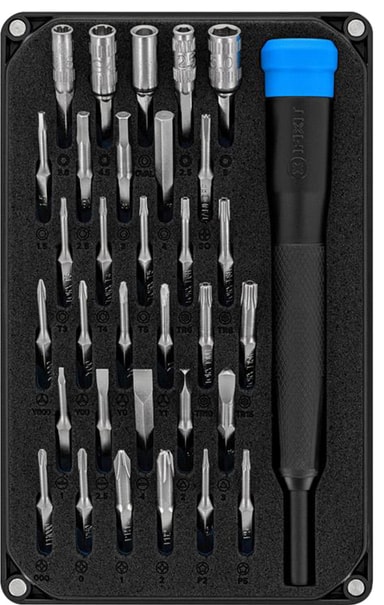 iFixIt Moray Precision verktygskit innehåller 32 viktiga bitar och en mejsel med bekvämt handtag i ett lättöppnat, magnetiserat fodral. Oavsett om det gäller smartphones, wearables, drönare eller bärbara datorer har du vad som krävs.