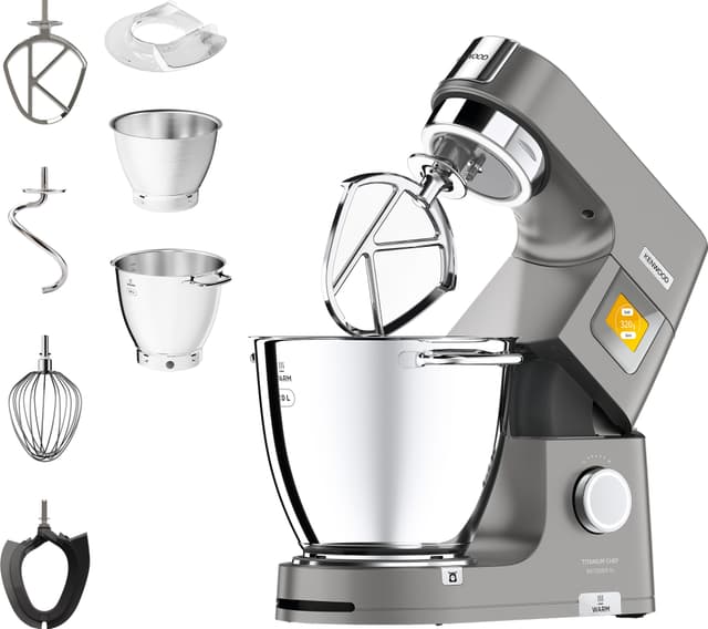 Kenwood Chef XL Titanium Patissier köksmaskin KWL90004SI är en mångsidig hjälpreda utrustad med en 7-liters EasyWarm-skål , en extra 5-liters skål, BakeAssist-pekskärm och en mängd olika förinställda SimpleTouch-program.Läs mer om produkten