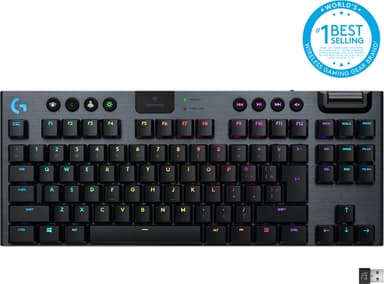 Logitech G915 Lightspeed Tenkeyless tangentbord för gaming har en smal, hållbar design, lyhörda GL Tactile-tangenter, RGB-belysning och batteri med lång livslängd. Gör detta tangentbord till din sköld på din väg mot seger.Läs mer om produkten