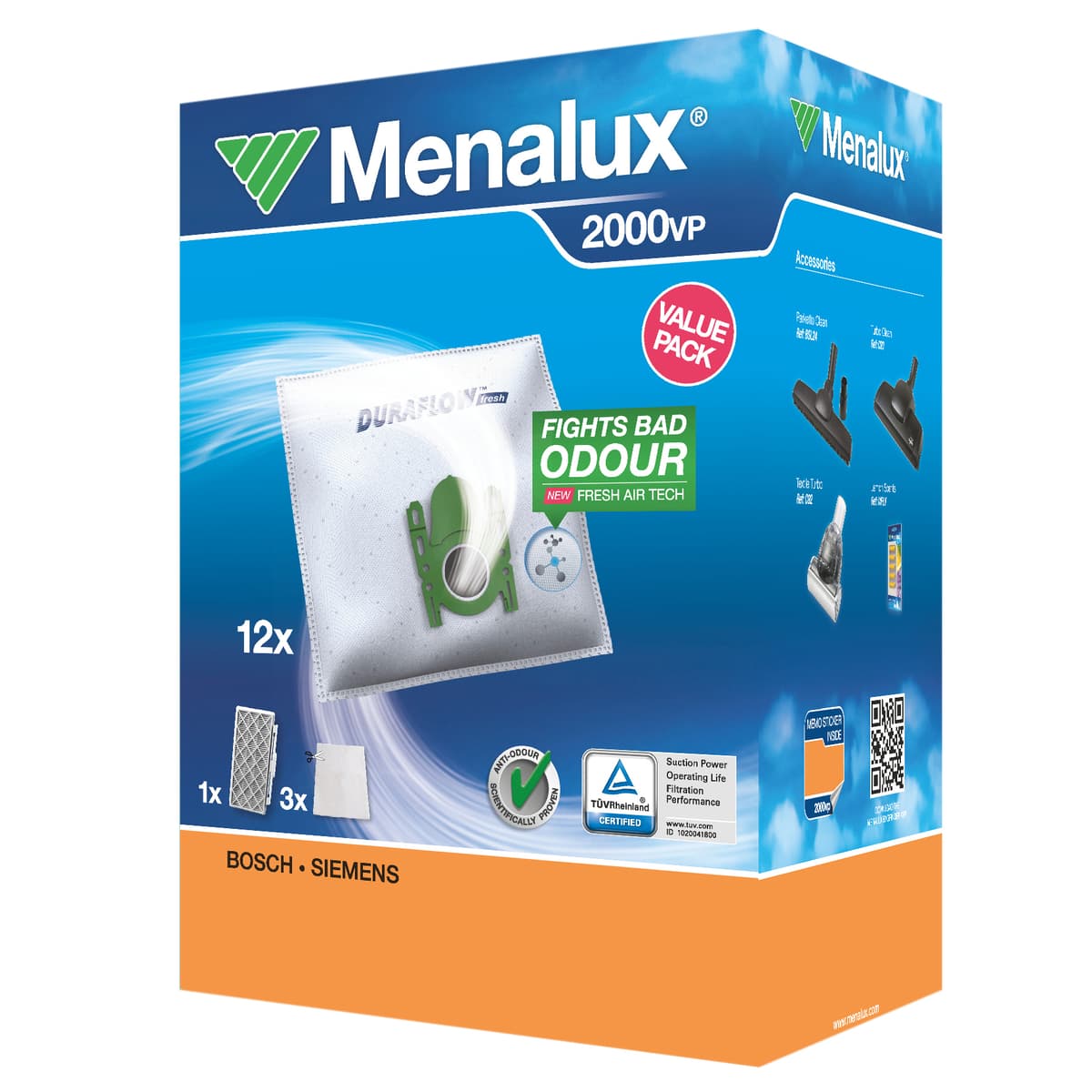 Värdepaket från Menalux med dammsugarpåsar och filter till utvalda dammsugare från Bosch och Siemens.Läs mer om produkten