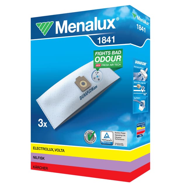 Menalux 1841 dammsugarpåsar som passar dammsugare från bland annat Electrolux, Nilfisk och Kärcher.