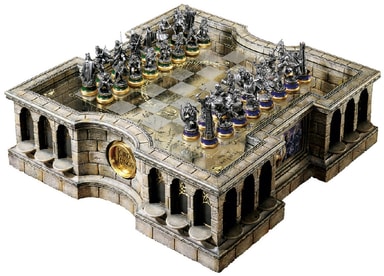 Skaffa detta Noble Collection Lord of the Rings schack och du kommer få filmexakta schackpjäser i metall på en spelbräde i glas med kartan över Middle-Earth synlig under den. Spela ett av de äldsta spelen med stil.Läs mer om produkten