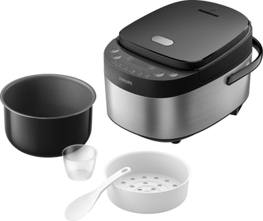 Koka fluffigt ris med Philips riskokare i 3000-serien HD3093/80. Den rymmer 0,85 liter okokt ris, kokar 2,5 liter på bara 30 minuter och erbjuder 8 program med en Håll varmt-funktion.Läs mer om produkten
