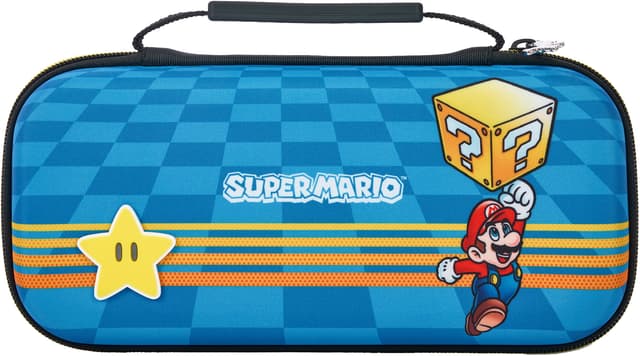 Håll din konsol säker under resor och njut av gott om förvaringsutrymme för spel och tillbehör tack vare PowerA Nintendo Switch Mystery block spelkonsolsfodral. Det skyddande fodralet har ett tåligt skal som skyddar din Switch mot stötar, repor och slag, medan det mjuka, vadderade innermaterialet håller din konsol säker. Det praktiska fodralet har gott om förvaringsutrymme för dina spel med de inbyggda spelkortshållarna och nätfickan rymmer dina kablar och tillbehör. När du reser kan du använda det praktiska handtaget medan den säkra dragkedjan håller Switch säkert på plats i fodralet.