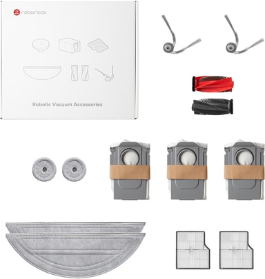 Tillbehörssatsen Roborock Saros 10 för dammsugare RR0891 innehåller 2 HEPA-filter, 2 sidoborstar, 2 moppdukar, 2 Edgewise moppdukar, 1 huvudborste och 3 dammpåsar. Den innehåller allt du behöver för att hålla din Roborock i toppskick.Läs mer om produkten