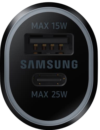 Med Samsung 40W billaddare kan du ladda två enheter samtidigt medan du kör. Välj mellan USB-A- eller USB-C-enheten med 15 respektive 25 W.Läs mer om produkten