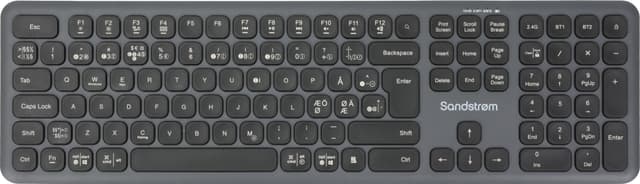 Sandstrøm Dual Mode trådlöst tangentbord har USB-dongel, Bluetooth, växlar enkelt mellan tre enheter, fullstor design och tysta tangenter för bekväm skrift på Windows och Mac.Läs mer om produkten
