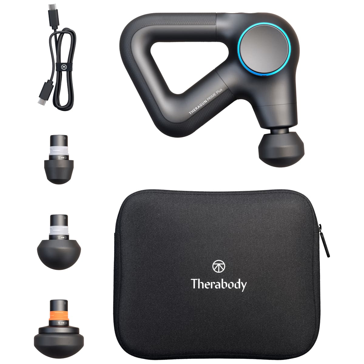 Therabody Theragun Prime Plus massagepistol har en speciell trekantig greppdesign och levereras med 4 tillbehör för att hjälpa dig hantera muskelvärk. Den uppladdningsbara massagepistolen kan användas i 150 minuter när den är fulladdad.Läs mer om produkten