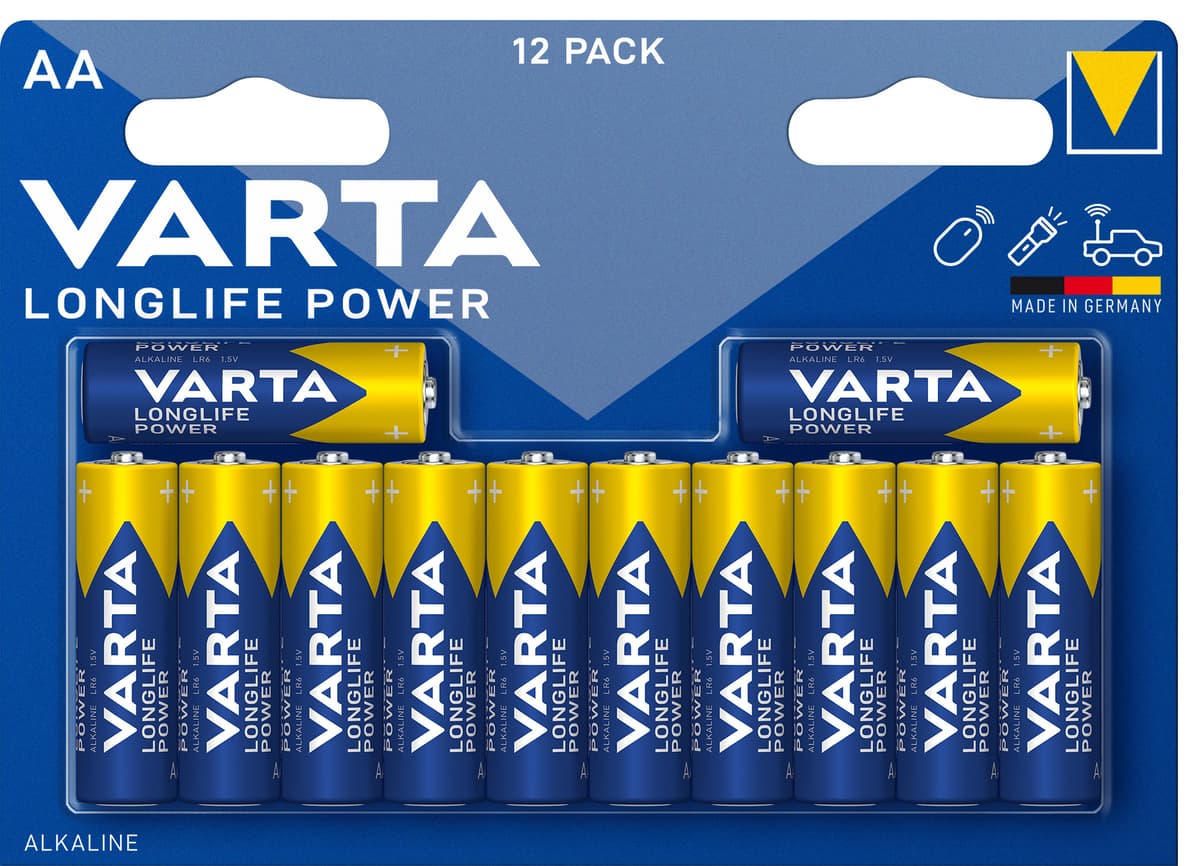 Varta Longlife Power AA-batteri är en kraftfull energikälla till för hemelektronik som trådlösa möss, ficklampor, fjärrkontroller eller leksaker. Förpackningen innehåller 12 AA-batterier.Läs mer om produkten
