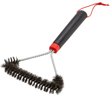Weber tresidig grillborste 6277 kommer hjälpa dig att hålla din grill ren och alltid redo för nästa grillning. Tack vare dess design och effektiva borstar kommer den enkelt få bort fett och rester från gallret. För enkel förvaring kommer borsten med en ögla för upphängning.