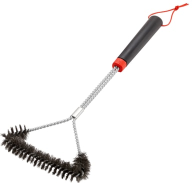 Weber tresidig grillborste 6278 kommer hjälpa dig att hålla din grill ren och alltid redo för nästa grillning. Tack vare dess design och effektiva borstar kommer den enkelt få bort fett och rester från gallret. För enkel förvaring kommer borsten med en ögla för upphängning.