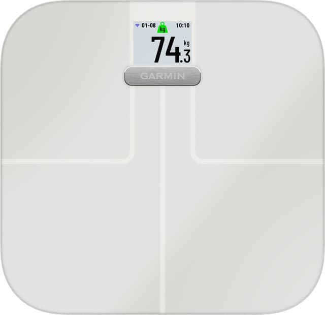 Mät exakt din vikt med valfria värden för BMI, kroppsfett %, muskelmassa och antal procent vatten i din kropp. Du kan också se din vikttrend under de senaste 30 dagarna om du använder Garmin Connect appen.