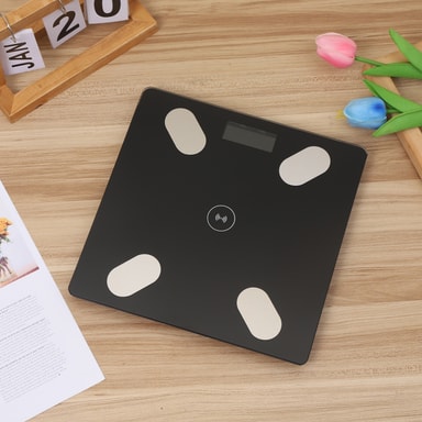 Elegant och kompakt design: Med sin slimmade design och eleganta svarta färg passar denna kroppsfettvåg perfekt in i alla badrum. Den är tillverkad av härdat glas och ABS-plast, vilket gör den både hållbar och lätt att rengöra. Den kompakta storleken gör den enkel att förvara när den inte används, vilket sparar värdefullt utrymme.