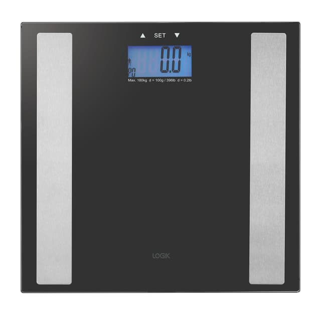 Logik LBSFULL16E är en modern badrumvåg i elegant svart design som passar alla interiörer.