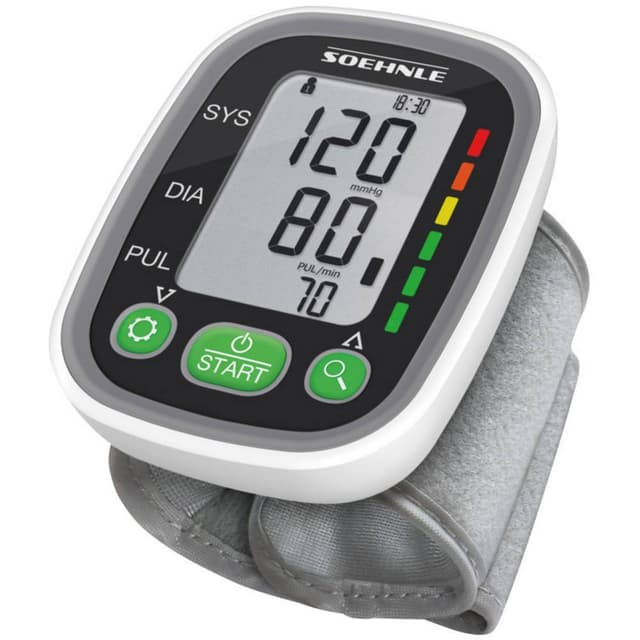 Håll koll på blodtrycket även under resan: Med den kompakta blodtrycksmätare för handleden Systo Monitor 100 från Soehnle kan du enkelt och bekvämt mäta ditt blodtryck var du än befinner dig. För att du alltid ska kunna lita på korrekta mätresultat, registrerar enheten med den inbyggda rörelsesensorn varje armrörelse som kan leda till felaktiga mätresultat. Den lättlästa LCD-displayen visar vid varje mätning systoliskt och diastoliskt blodtryck samt puls. Arytmiregistrering upptäcker oregelbundenhet i hjärtat under mätningen och visar på så sätt eventuella hjärt-rytm-störningar. Ytterligare ett plus för din hälsa: Systo Monitor 100 fastställer från de tre senaste mätningarna vardera medelvärdet för att härleda entydiga trender över dina blodtrycksvärden. För att du ska kunna följa utvecklingen under en längre tid har enheten 60 minnesplatser för två användare. Vid daglig mätning kan alla värden inklusive datum och klockslag på ca två månader sparas. Ett extra gästläge gör att du kan använda den av andra personer utan att lagra mätvärden permanent. Dessutom visas vid varje mätning dina resultat enligt WHO-systemet (World Health Organisation) på en trafikljus-färgskala: Från perfekt via normalt till hypertoni. Detta möjliggör enkel och entydig bedömning av ditt blodtryck. Den förformade manschetten kan anpassas individuellt och är lämplig för handleder med ett omfång på 13,5 till 21,5 cm. Inklusive energisparande automatisk avstängning och batterier för omedelbar start. OBS! Vi beklagar att vi inte har hunnit översätta denna produkttext. Texten nedan är maskinöversatt från tyska.