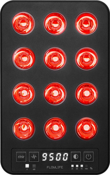 Flowlife Panel Go 60 Two Waves energiljus FLFLPG602WV1 är en bärbar rödljusterapipanel som använder 660 nm rött ljus och 850 nm nära-infrarött ljus för att stödja hudförnyelse, muskelåterhämtning och balans i nervsystemet. Den levererar fokuserat, högintensivt ljus i kompakt form, med oberoende våglängdskontroll, justerbar intensitet och flexibel sessionstid.