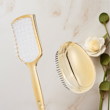 Skalpmassage & Avkoppling: De mjuka, rundade borsten i detta hårborstset ger en skonsam och uppfriskande skalpmassage. Att massera hårbotten stimulerar blodflödet, vilket främjar hårväxt och avslappning. Använd den under din schamponeringsrutin för att jämnt fördela produkten och exfoliera hårbotten, eller använd den helt enkelt på torrt hår för att lindra spänningar och främja en känsla av välbefinnande. Den unika borstdesignen säkerställer en bekväm och effektiv massageupplevelse, vilket gör att din hårbotten känns fräsch och vitaliserad. Regelbunden skalpmassage kan också hjälpa till att minska stress och förbättra den allmänna hårhälsan. Den är kompatibel med olika hårbottenbehandlingar och oljor.