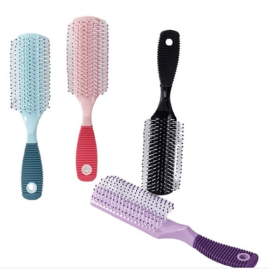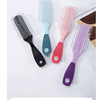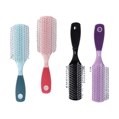 Utrassling och styling: Denna ventilerade borste är utformad för både uttrassling och styling av hår. De flexibla borsten glider försiktigt genom knutar och trassel, vilket minimerar brott och skador. Den är lämplig för alla hårtyper, inklusive tjockt, lockigt och fint hår. Den ventilerade designen möjliggör luftflöde, vilket hjälper till att påskynda torktiden och förhindra värmeskador. Borsten kan användas för att skapa en mängd olika frisyrer, från slätt och rakt till voluminöst och vågigt. Den är också bra för att släta ut friss och flygigt hår, vilket gör att ditt hår ser polerat och förfinat ut. Den lätta designen gör den enkel att hantera och manövrera, även när du stylar svåråtkomliga områden.