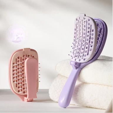 Avkopplande skalpmassage: Denna vikbara och portabla massagehårborste är utformad för att ge en lugnande skalpmassage medan du stylar ditt hår. Borstens unika design stimulerar blodflödet till hårbotten, vilket främjar avslappning och minskar spänningar. Regelbunden användning kan hjälpa till att lindra stress och förbättra den allmänna hälsan i hårbotten. Den är perfekt för alla som vill lägga till en touch av egenvård till sin dagliga hårvårdsrutin och säkerställer en avkopplande och uppfriskande upplevelse varje gång du borstar håret. Den skonsamma massagefunktionen hjälper också till att fördela naturliga oljor, vilket gör att ditt hår ser friskt och glänsande ut.