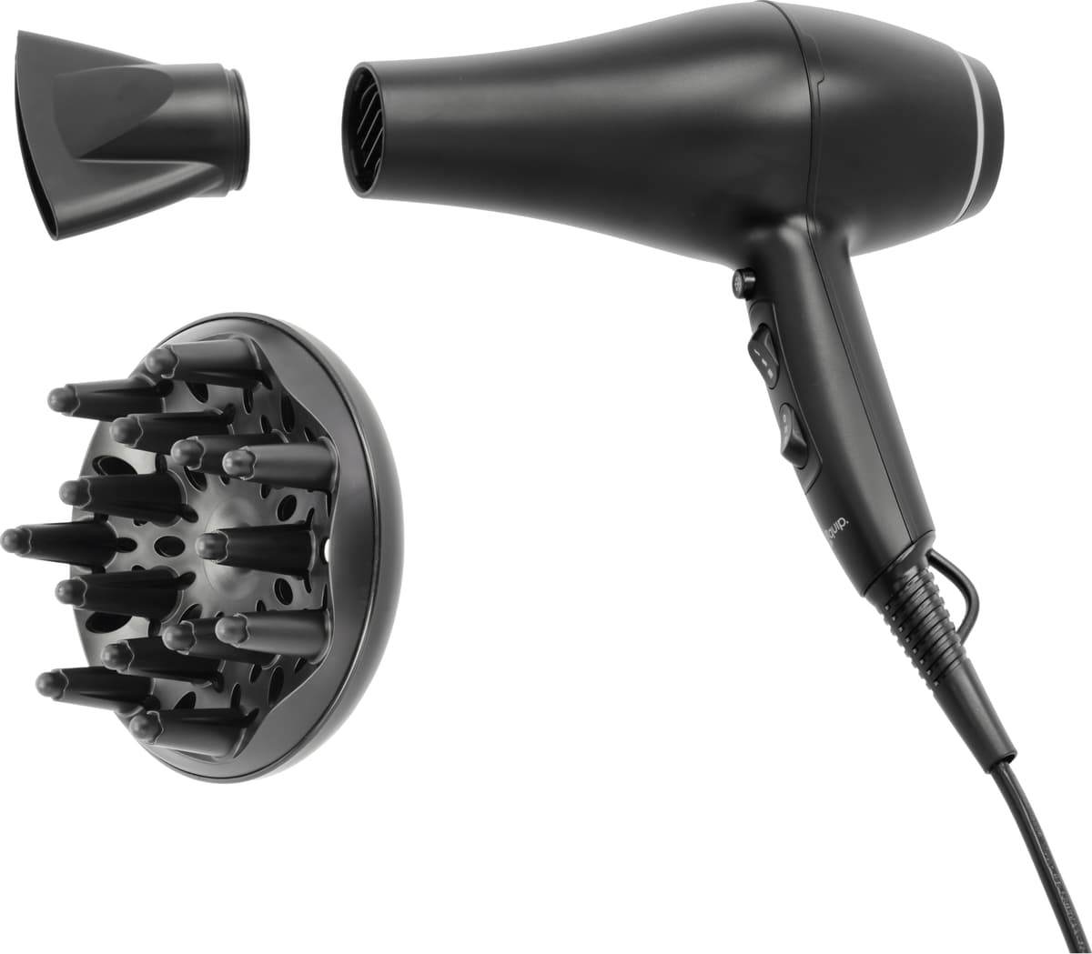 Equip hårtork har en 2200W AC-motor, 2 fläkthastigheter, 3 temperaturinställningar, en jonfunktion för att minska frizz och en cool shot-funktion för att fästa din frisyr. Den innehåller även en diffusor och koncentratorfästen.Läs mer om produkten