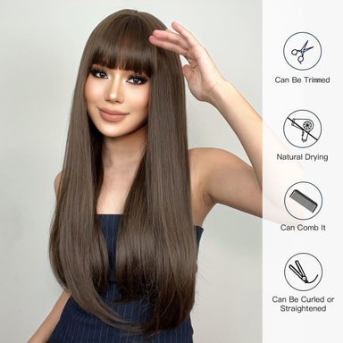 Högkvalitativ syntetfiber: Vår peruk är tillverkad av premium högtemperatur syntetisk fiber. Det ser ut och känns som naturligt hår, vilket säkerställer ett realistiskt utseende som är lätt att underhålla.