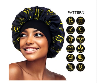 Ultimat Hårskydd: Skydda dina ömtåliga frisyrer medan du sover med vår Zodiak Satinhätta. Det släta satinforet minimerar friktionen, vilket minskar brott, kluvna toppar och frissighet. Vakna med mjukare, friskare hår varje morgon. Denna Satinhårhätta är utformad för att hålla ditt hår återfuktat och förhindra torrhet, vilket säkerställer att dina lockar förblir läckra och livfulla. Perfekt för alla hårtyper, särskilt lockigt, vågigt och krulligt hår.