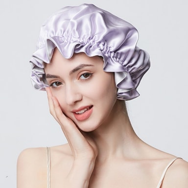 Lyxig komfort: Upplev den ultimata komforten med vår sovhatt i 19 momme mullbärssilke. Dess släta, mjuka textur glider enkelt över ditt hår och förhindrar trassel, brott och frissighet medan du sover.
