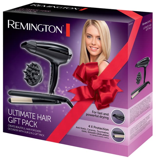 Njut av professionell hårvård med hjälp av Remingtons presentförpackning med en Pro-Air Shine hårtork och och en smal keramisk platt-tång.Läs mer om produkten