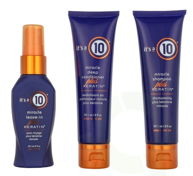 • It's a 10 Keratin Trail Set 177.3 ml Shampoo 59,1ml/Conditioner 59,1ml/Leave-in 59,1ml