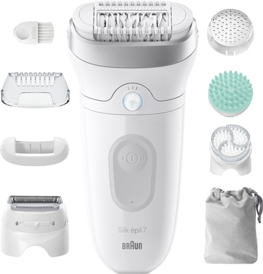 Braun Silk·épil 7 SkinSpa epilatorn har en sladdlös design som är bekväm att hålla i och lätt att kontrollera. Den eleganta konstruktionen är gjord för regelbunden användning och levereras med flera tillbehör för både hårborttagning och hudvård.