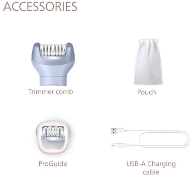 Enheten är lämplig för både våt- och torranvändning, vilket gör att du kan epilera i duschen eller på torr hud beroende på vad du föredrar.