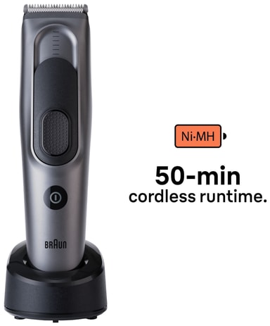 Braun Series 7 hårklippare HC7390 ger en precis och professionell hårtrimning bekvämt i ditt hem. Ett uppladdningsbart batteri ger upp till 50 minuters användartid och de 17 längdinställningarna ger dig massor med flexibilitet för att skapa vilken frisyr du vill. Dessutom gör Memory SafetyLock din hårvårdsrutin ännu enklare.