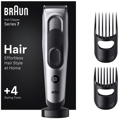 Med en Braun Series 7 hårklippare HC7390 kan du få en ny frisyr när du vill. Utan att boka en tid. Denna pålitliga enhet har en 50 minuters användartid, 17 längdinställningar och ett praktiskt Memory SafetyLock.Läs mer om produkten