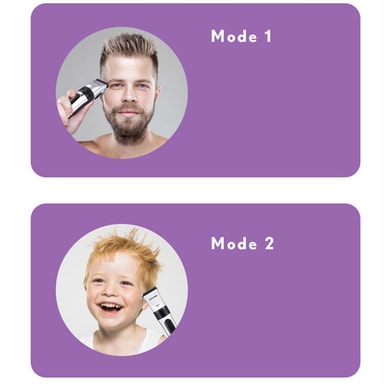 Kraftfull och tyst: Hårklipparen har en kompakt storlek, stark motor och låg ljudnivå. Välj mellan olika längder, flera distanskammar och 2 olika hastigheter.