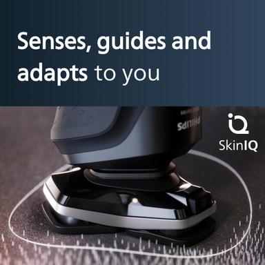 Utrustad med SkinIQ-teknologi känner rakapparaten automatiskt av skäggtätheten och justerar effekten för en mer bekväm och effektiv rakning.