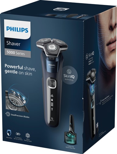 Philips Series 5000 S5885/50 rakapparat erbjuder len, effektiv rakning med 60 min sladdlös drift. SkinIQ anpassar sig till skäggdensitet, flexibla huvuden följer ansiktskonturer. Inkluderar 3 tillbehör.Läs mer om produkten