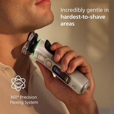 Njut av en grundlig och nära rakning utan hudirritation tack vare de 360-graders flexibla huvudena som följer dina ansiktskonturer utan ansträngning.