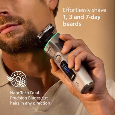 NanoTech Dual Precision-bladen ger oöverträffad precision och klipper hår i alla riktningar för en slät och nära rakning. Dessa avancerade blad säkerställer en felfri, irritationsfri upplevelse, även på svåråtkomliga områden. Raka smartare, inte hårdare.