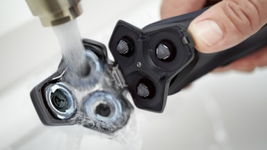 Rengör din rakapparat enkelt med ett knapptryck som öppnar rakapparatens huvud och sedan kan du snabbt skölja den under vatten.