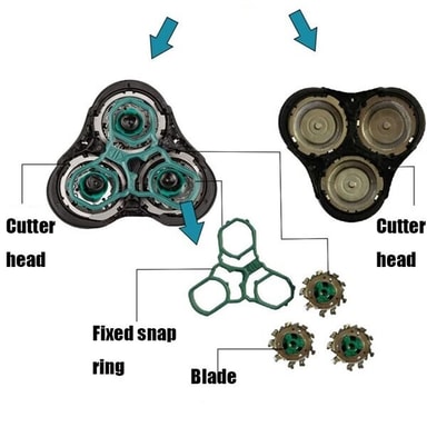 Reservdel med tre roterande skärhuvuden för nära rakning